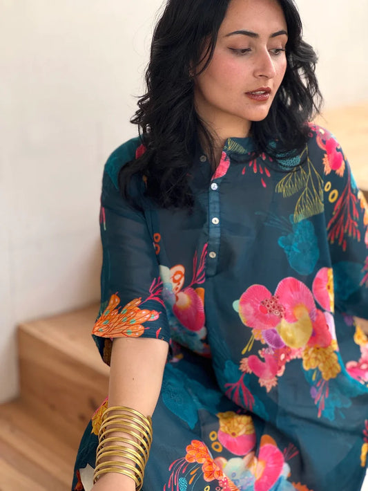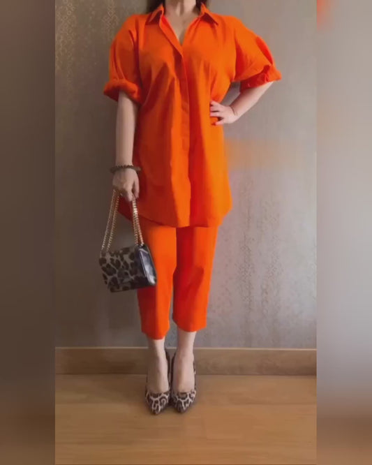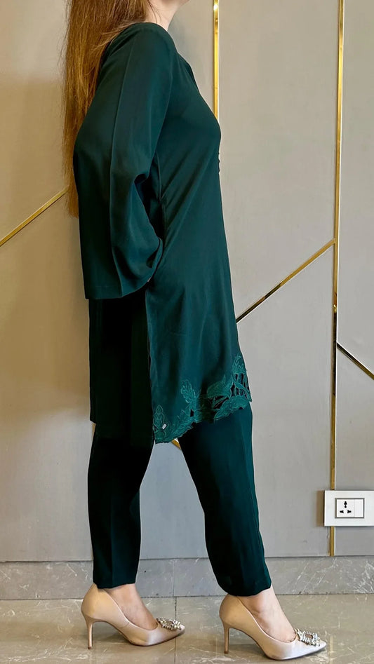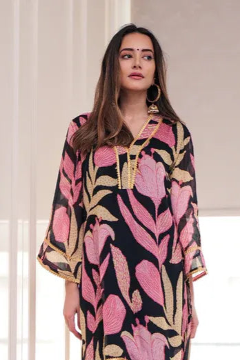 Black Leaf Crepe Co-ord Set Two Piece Outfit for Women