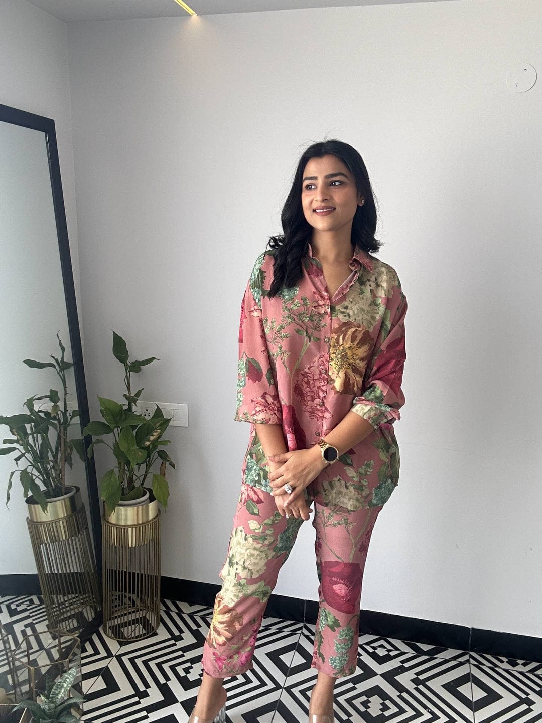Experience the classic beauty of black and white florals with our Satin Crepe Co-ord Set. This stylish two-piece set is made from soft, silky imported crepe, featuring bold floral prints that make your outfit pop.