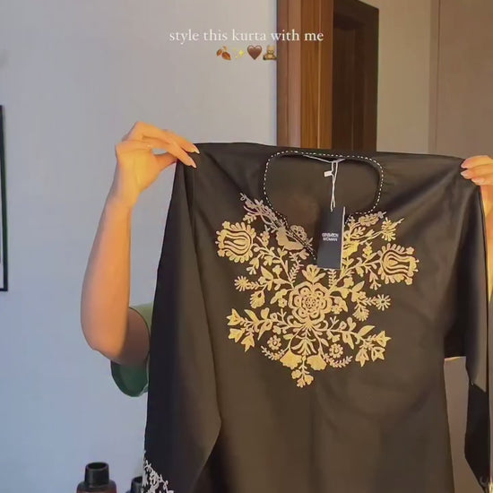 Embroidery Black Cotton Kurta Set